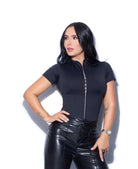 Esta blusa no es básica, es estratégica. Su silueta ajustada resalta tu figura con seguridad, mientras los broches frontales aportan un detalle moderno que transforma completamente el look. Es de esas piezas que te permiten decidir cuánto mostrar y cómo hacerlo, siempre con clase.